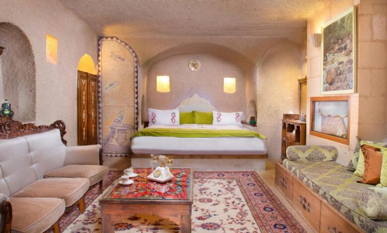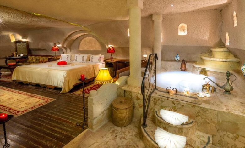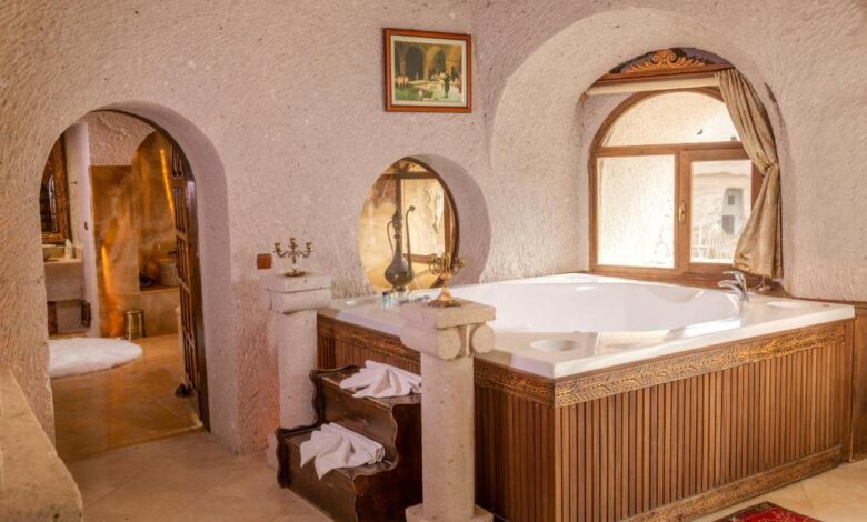 This luxurious cave hotel in Ayvali offers rooms built into volcanic rock with vaulted ceilings and decorated in traditional Turkish style. It features free Wi-Fi, a hot tub and massage treatments. All of the elegant rooms at Gamirasu Hotel include private bathrooms, while some include an LCD TV and a spa bath. Many have balconies overlooking the rose garden. In Cappadocia Gamirasu Cave Hotel’s restaurant, traditional Cappadocian meals are prepared using organic products. Breakfast is served in an open buffet with homemade jams, locally dried apricots, local honey, and fresh cream. The seasonal outdoor pool can also be enjoyed. Free parking is offered on site and Nikolos Monastery is only a 5-minute drive away.